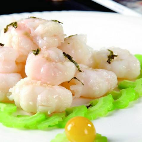 4、炒锅内留油少许置火上,将虾仁倒入锅中,并迅速倒入茶叶和茶汁,烹酒,加盐和味精,颠炒几下,即可出锅装盘。